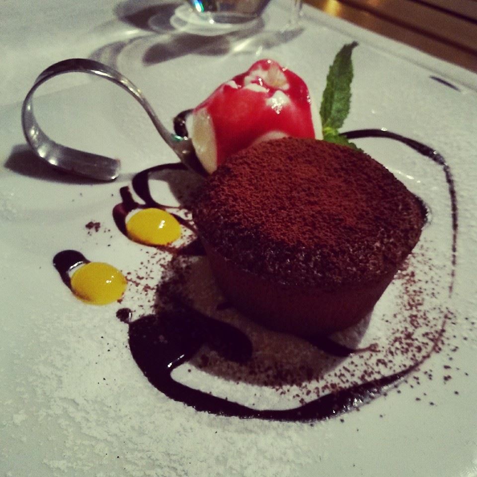 Десертите обаче не могат да се нарекат просто материални, те са произведение на изкуството. Ние се спряхме на шоколадово суфле (класика в жанра + меко казано перфектно изпълнение) и чийзкейк със сладко от кайсии – без да преувеличавам – промени ми мнението за този десерт въобще (или иначе казано – вече официално обичам чийзкейк 🙂 )